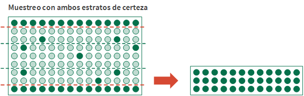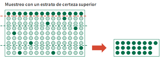 Las muestras de la parte de la población que no es capturada por un estrato de certeza se seleccionan con el método aleatorio.