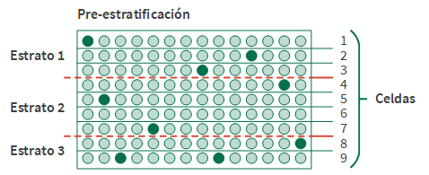 Las celdas de preestratificación y las celdas que se utilizan en el método de selección de muestras por celdas no son lo mismo.