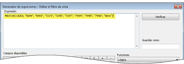 DEFINE FIELD f_Códigos_prohibidos COMPUTED MATCH(CODES; "5094"; "5993"; "7273"; "7295"; "7297"; "7994"; "7995"; "7996"; "8641")