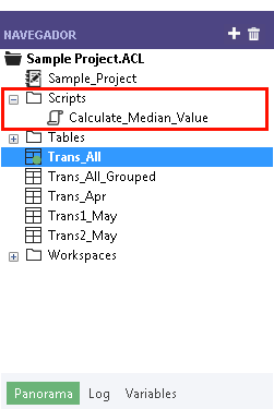 Este script realiza todas las acciones que usted realizó manualmente en el tutorial "Comenzar a usar ACL Analytics".