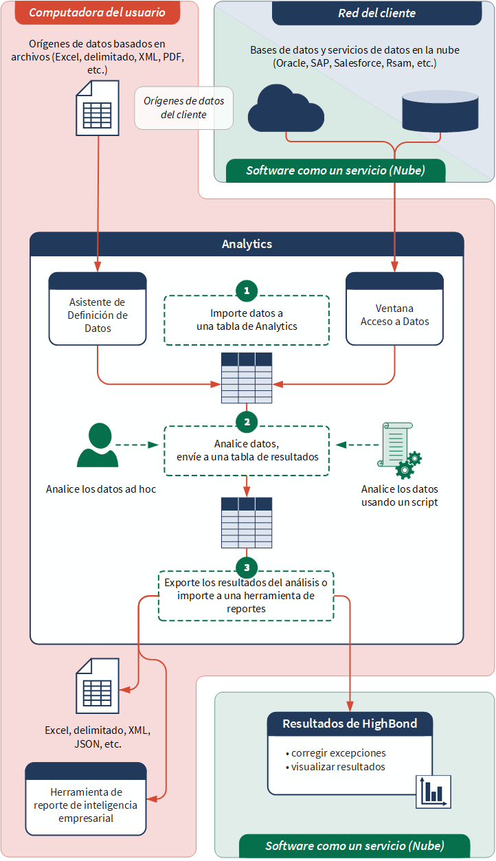 El siguiente diagrama muestra el flujo de trabajo básico que se asocia con Analytics: