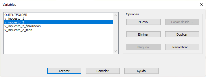 la ficha Variables