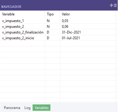 La inserción del comando DISPLAY VARIABLES en diferentes lugares de un script le permite capturar el estado de las variables del proyecto en un momento determinado.