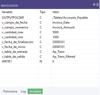 Si recorre un script línea por línea, las variables definidas en el script o las variables generadas por el sistema aparecen en la ficha Variables en el momento de su creación. Si la variable ya existe, el valor se actualiza de forma dinámica, según la lógica del script. (En el Editor de scripts, use la opción Paso