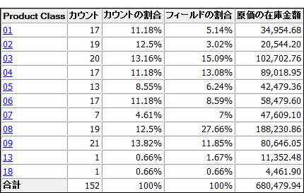 - 在庫テーブルの製品クラスに基づく分類