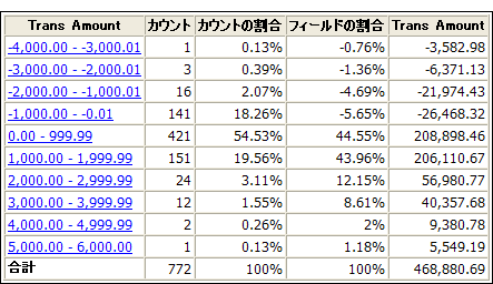 Trans Amount フィールド, 2 番目 フィールドの割合フィールド |