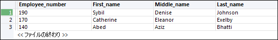 出力テーブルでの順序は次のようになります。