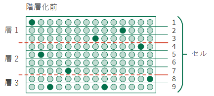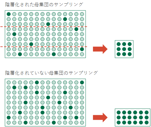 階層化とは、層と呼ばれるいくつかの小グループに母集団を分割することです。各層内の値は、比較的に同質であるのが理想です。