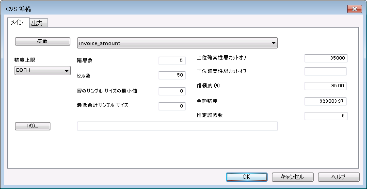 入力値は Analytics で計算されるサンプル サイズに影響します。[CVS 準備]ダイアログ ボックスで異なる入力値を実験し、サンプル サイズへの影響を確認できます。