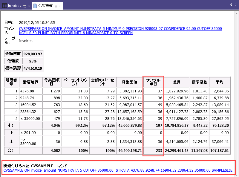 従来の変数サンプリングによるサンプルを準備したら、CVSSAMPLE コマンドを再利用のために保存しておくと便利です。
