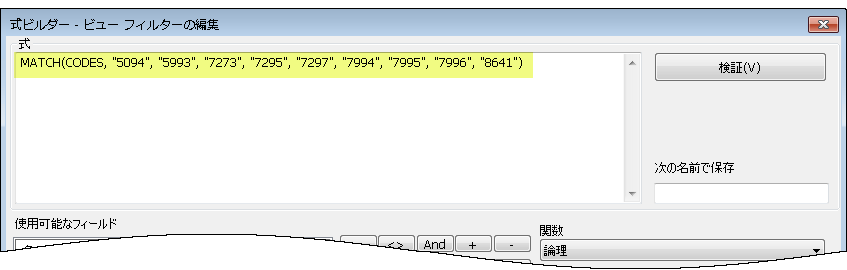 DEFINE FIELD f_Prohibited_codes COMPUTED MATCH(CODES, "5094", "5993", "7273", "7295", "7297", "7994", "7995", "7996", "8641")