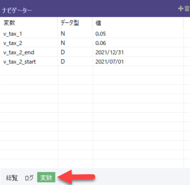 関連付けられた[変数]タブで、変数の作成や、変数への値の割り当てをリアルタイムで追跡する