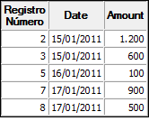 Os seguintes exemplos demonstram resultados que são válidos e inválidos dependendo de a ordem dos testes ser correspondente à ordem da ordenação e da direção dos valores nos campos-chave Data e Valor.