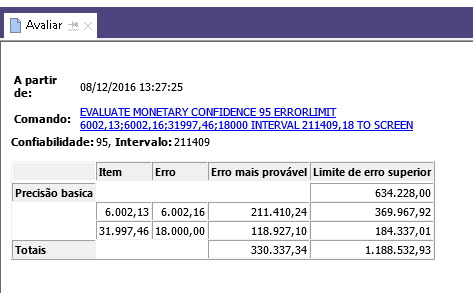 Execute novamente o comando de avalição com valores diferentes no campo Erros para ver como o resultado é alterado.