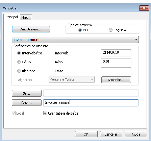 - Selecione Amostragem > Amostragem por registro/unidades monetárias > Amostra.