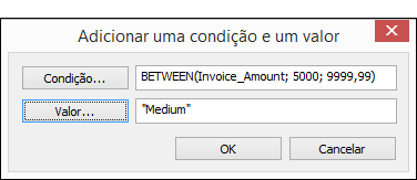 . - Na caixa de diálogo Adicionar uma condição e um valor, faça o seguinte e clique em OK: