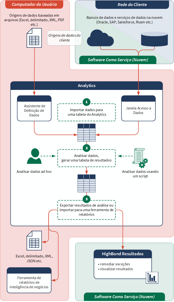 O diagrama abaixo mostra o fluxo de trabalho básico associado ao Analytics: