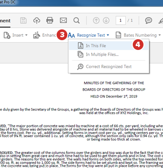 Wählen Sie Text erkennen aus. Ihr Text kann nun sowohl im PDF-Dokument als auch nach dem Hochladen durchsucht werden.