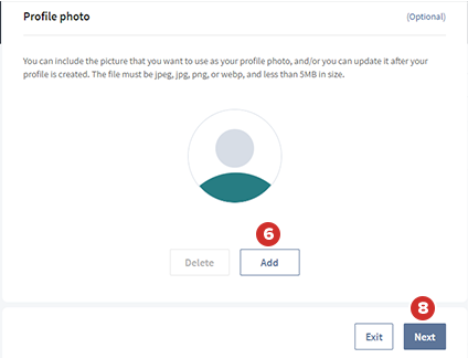 (Optional) To add a profile photo to your new profile, select Add, and select your photo.