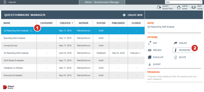 To perform the same process in the Prefill Manager, select the master questionnaire and select "Properties" in the Options menu.