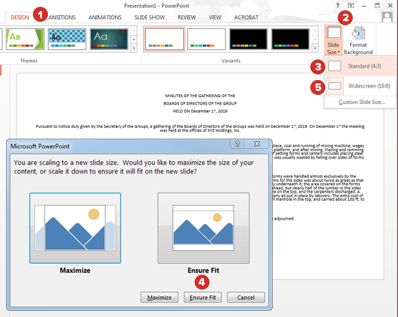 When prompted, choose Ensure Fit. Choosing the Maximize option may push content outside the viewable area of your slides.