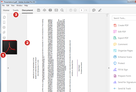 Use the rotation arrows on the page thumbnail or in the menu bar to rotate the necessary pages to their proper landscape orientation.