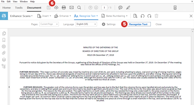 Select Recognize Text. Your text will be made searchable, both in the PDF document and when uploaded.