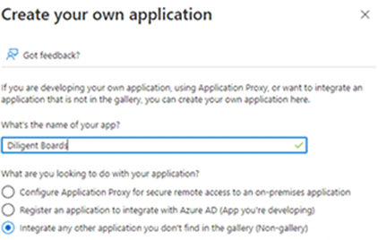 Enter a name for the application under What's the name of your app?, such as Diligent Boards.
