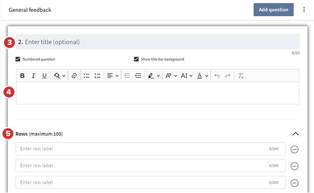Aparecerá un cuadro de diálogo del editor de preguntas. Si desea que la pregunta matrix muestre un título, escríbalo en el campo Ingresar título (opcional).