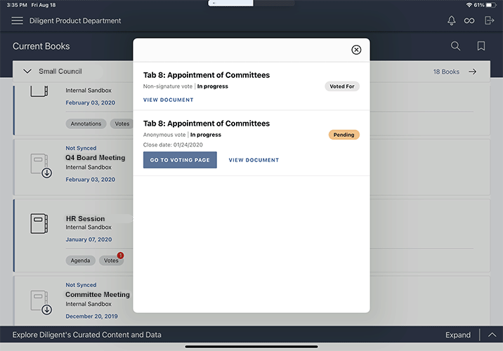 Seleccione el icono Votos en la vista de lista del librero. Aparecerá la ventana de votación.