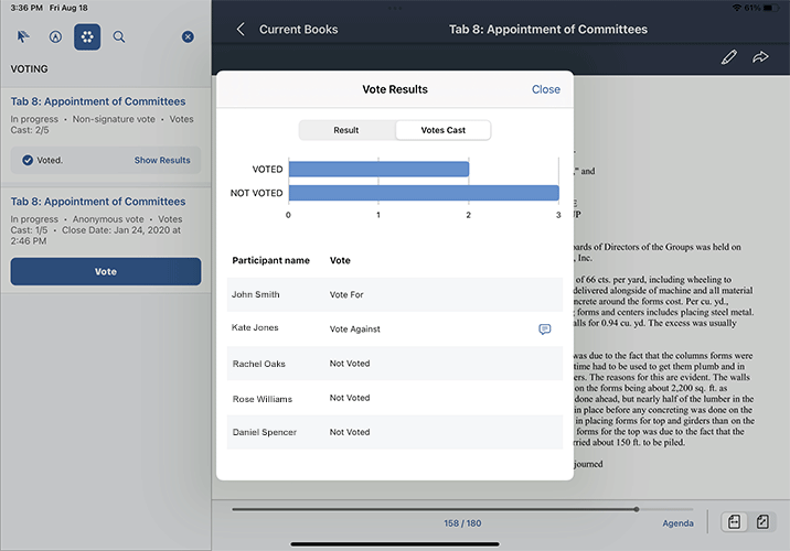 Seleccione la opción Votos emitidos en la parte superior de la ventana para ver más información sobre los participantes en la votación.