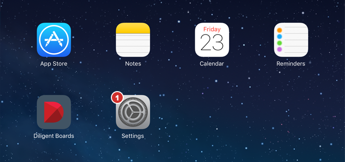 Si no ha configurado Touch ID en su dispositivo y le gustaría utilizar Touch ID con Diligent Boards, seleccione Configuración en la pantalla de inicio del iPad. Si ya configuró Touch ID en su dispositivo, vaya directamente al paso 6.