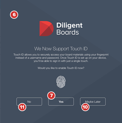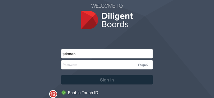 Si pertenece a varias juntas directivas, Touch ID debe ser activado por Diligent para cada junta de modo que lo tenga disponible como una opción.