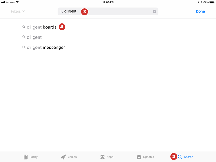 En el campo de búsqueda, ingrese las palabras clave Diligent Boards.
