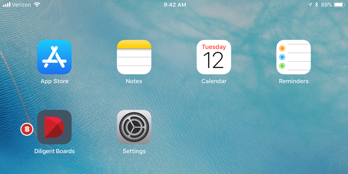 Una vez que su ID de Apple sea creado correctamente, se descargará la aplicación Diligent Boards y aparecerá un icono en su pantalla de inicio. Seleccione este icono para abrir la aplicación.