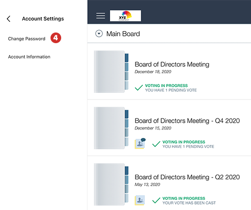 Diligent Boards para iPad le permite cambiar su contraseña existente desde la aplicación.