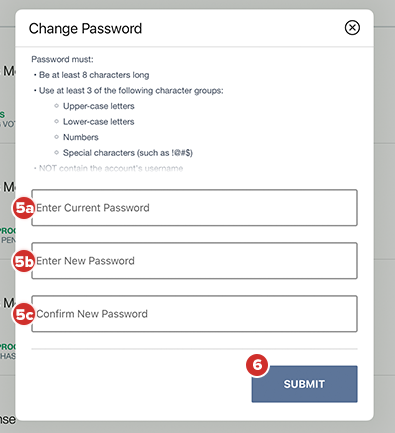 Su nueva contraseña requerirá los parámetros que establezca la política de seguridad de su empresa. Dicha política será visible entre los campos de ingreso de contraseña.