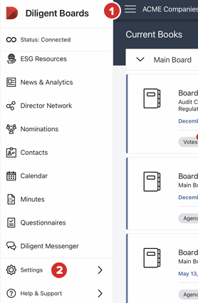 Seleccione el botón Menú de secciones, que se encuentra en la esquina superior izquierda, para abrir el menú de secciones.