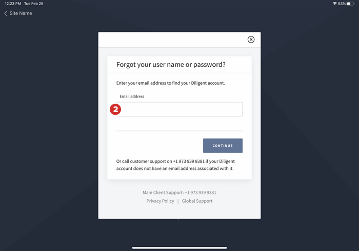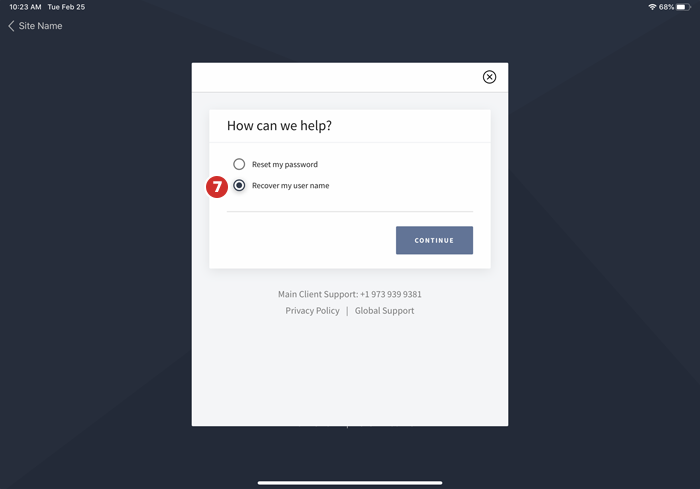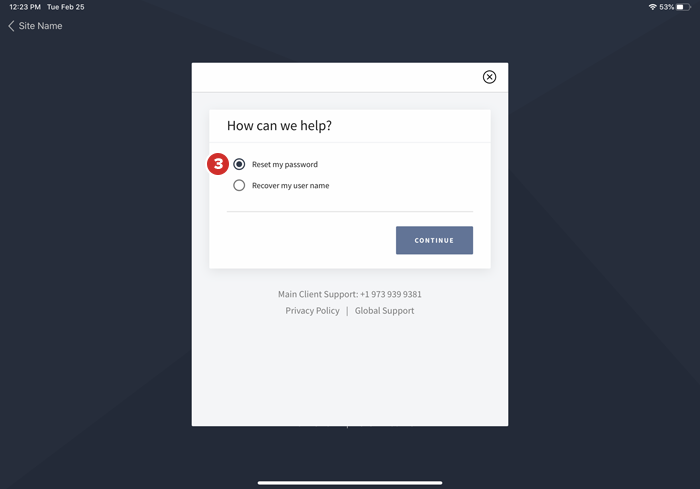 Puede restablecer su contraseña u obtener un recordatorio de su nombre de usuario mediante el autoservicio de recuperación. Si primero necesita buscar el nombre de su sitio, visite la página Buscar el nombre de su sitio.