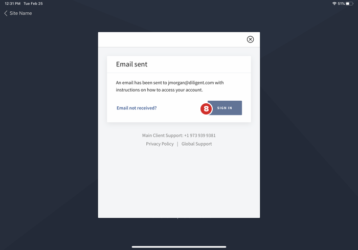 Se enviará un correo electrónico con su nombre de usuario a su dirección de correo electrónico registrada. Una vez que reciba este correo electrónico, seleccione Iniciar sesión para pasar a la pantalla de inicio de sesión.