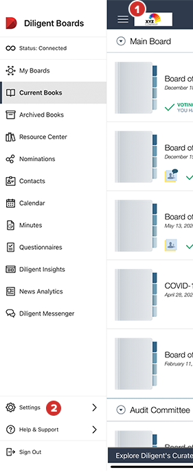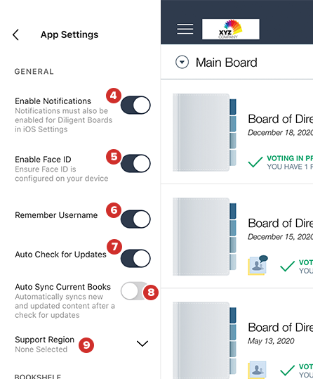 Buscar actualizaciones automáticamente es una opción que se encuentra activada de manera predeterminada y que automáticamente verificará la existencia de cambios en el contenido de su Diligent Boards cuando inicie sesión y vea las secciones. Desactivar esta función permitirá que las secciones se carguen de modo instantáneo sin mostrar una pantalla de carga, pero usted manualmente tendrá que buscar actualizaciones.
