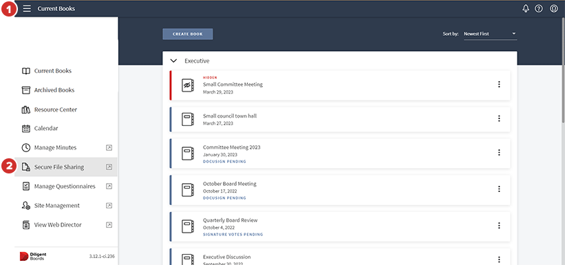 Diligent Secure File Sharing (SFS) facilita el intercambio confidencial de documentos. Con la experiencia integrada de SFS y Diligent Boards, usted y sus directores tienen acceso a información confidencial antes, durante y después de las reuniones de la junta directiva.
