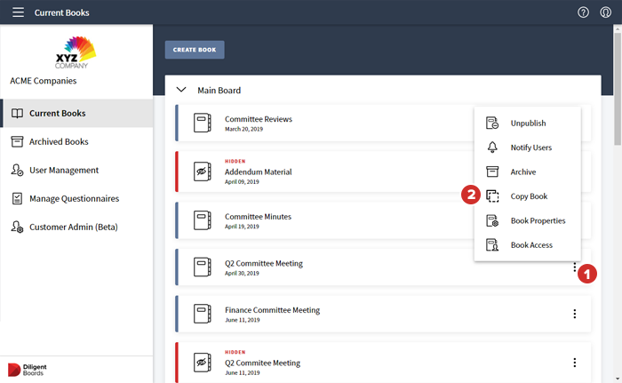 Abra el menú del libro que desea copiar en el centro de libros actuales o en el editor de libros.