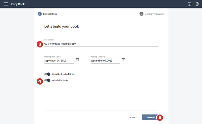 Aparecerá la ventana Copiar libro. La mayoría de las opciones aquí son idénticas a las de la ventana Crear un nuevo libro, y todas se pueden editar según sea necesario.