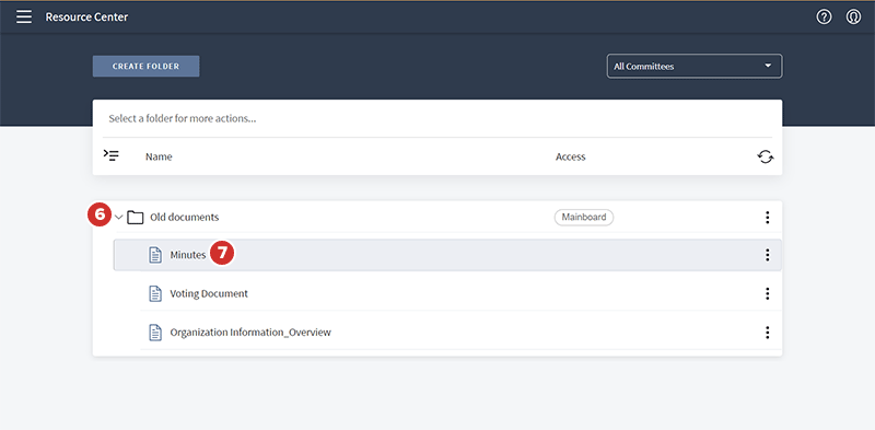 Seleccione la flecha que está junto al nombre de una carpeta para ver una lista de los documentos de esa carpeta.