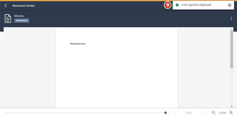Una vez que el enlace esté disponible, aparecerá un indicador de confirmación que dice "Enlace copiado en el portapapeles". Puede compartir un enlace desde el portapapeles pegándolo en una aplicación externa como Microsoft Word o el correo electrónico.