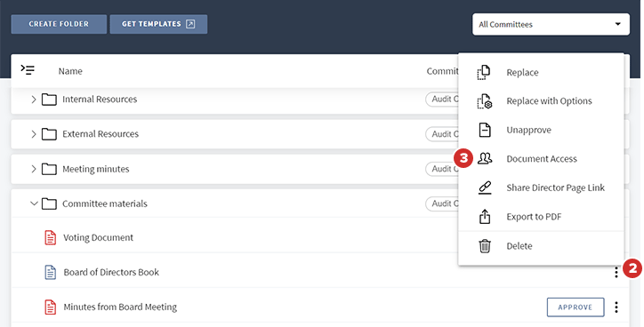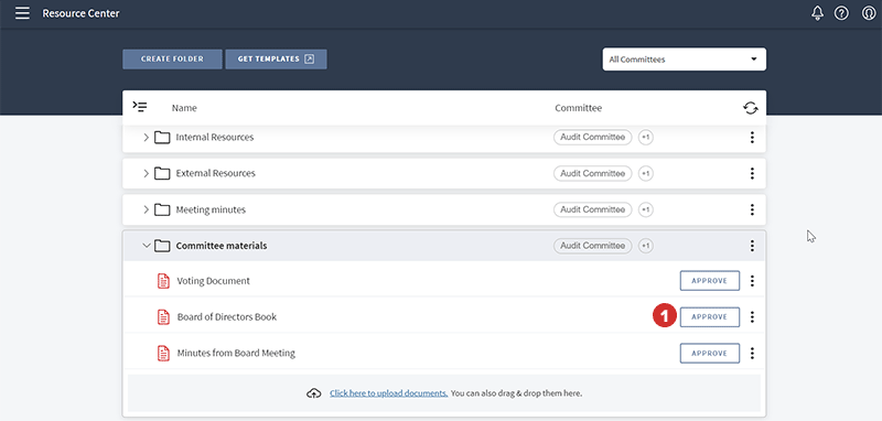 Después de agregar documentos, seleccione Aprobar. Los archivos aparecerán para todos los usuarios que tengan acceso a la carpeta.