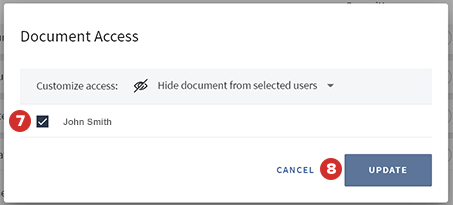 Para impedir que determinados usuarios vean el documento, seleccione Ocultar el documento a usuarios seleccionados.