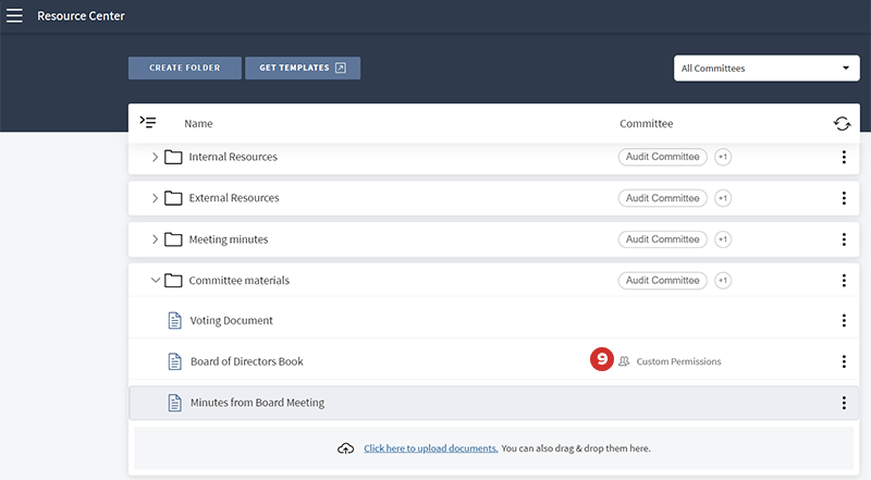 Este tema describe cómo administrar la visibilidad de los documentos y el acceso a estos en el Centro de recursos.
