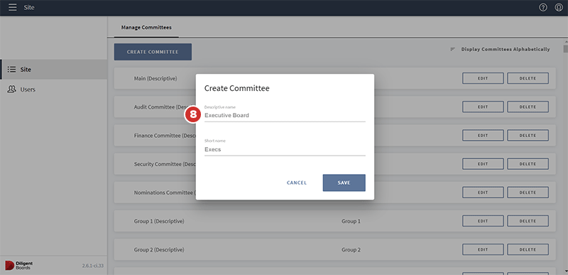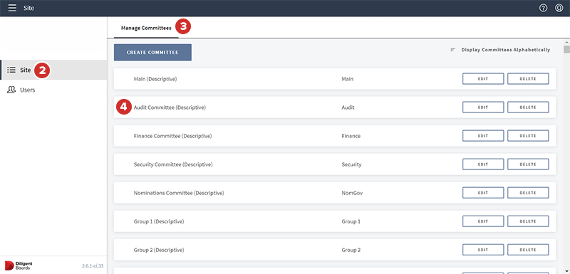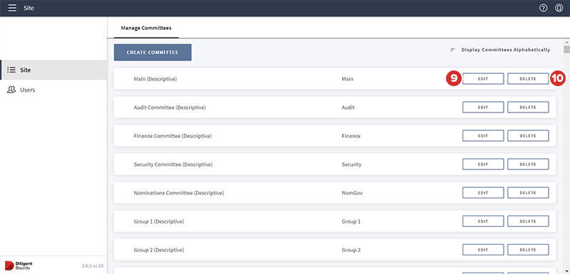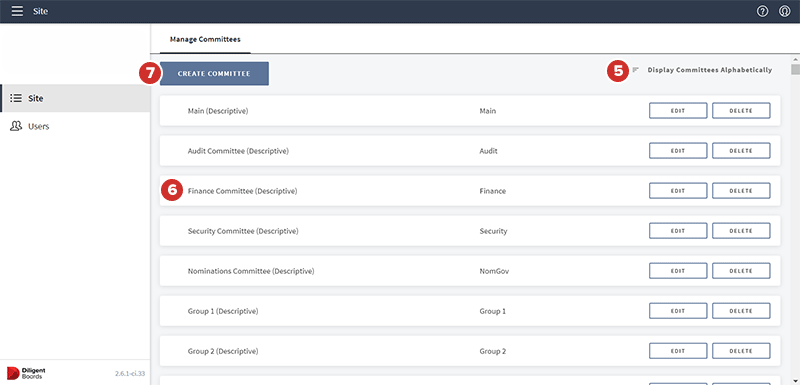 Como administrador de contactos, puede administrar los comités en todo su sitio de Boards. En este tema se explica cómo crear, editar, ordenar y eliminar comités.
